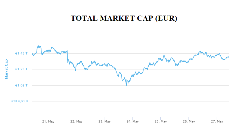 This week, the total market capitalization exceeded 1.38 trillion EUR. Decrease at the 7-day interval is 2.81 %. Bitcoin decreased by 4 % during the week to a current value of over than 31 400 EUR. Bitcoin dominance is 42.3 %.