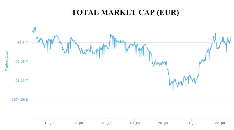 This week, the total market capitalization exceeded 1.11 trillion EUR. Decrease at the 7-day interval is 0.1 %. Bitcoin decreased by 2 % during the week to a current value of over than 27,300 EUR. Bitcoin dominance is 46 %.